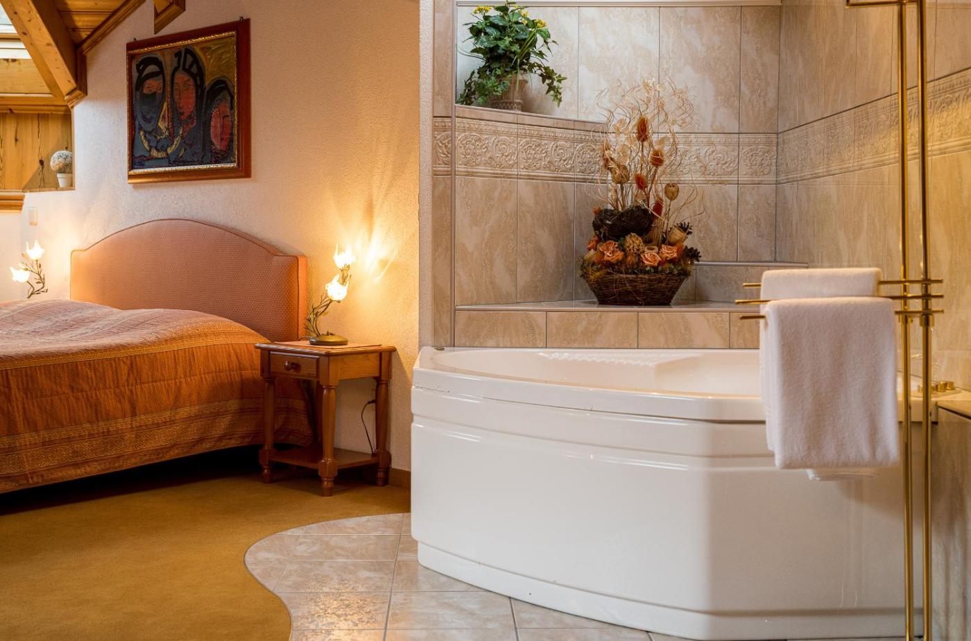 Romantic Suite with Sauna. The suite features carpeted floors, a seating area with a TV, a wardrobe, a safe deposit box, as well as a sofa. The unit offers 1 bed.